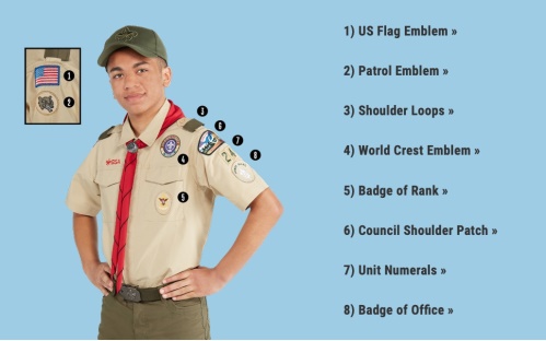 Wearing the Scout uniform is one of the aspects of Scouting. Scouts should wear the uniform for any official Scouting activity. The complete uniform consists of an official Scouts BSA shirt, pants, socks, belt, neckerchief, merit badge sash, and associated badges. Scouts are encouraged to wear the complete uniform, but a new Scout can start off with just the Scout shirt and badges and add the other items later.